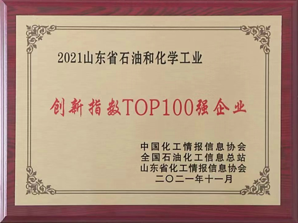 由山東省化工情報信息協(xié)會主辦的2021(第十一屆)中國化工產(chǎn)學(xué)研高峰論壇在東營廣饒召開。論壇峰會舉行了“2021化工年度精英人物暨明星單位”頒獎盛典,發(fā)布了“2021山東省石油和化學(xué)工業(yè)創(chuàng)新指數(shù)top100企業(yè)”榜單。集團公司榮獲“2021山東省石油和化學(xué)工業(yè)創(chuàng)新指數(shù)top100企業(yè)”稱號。