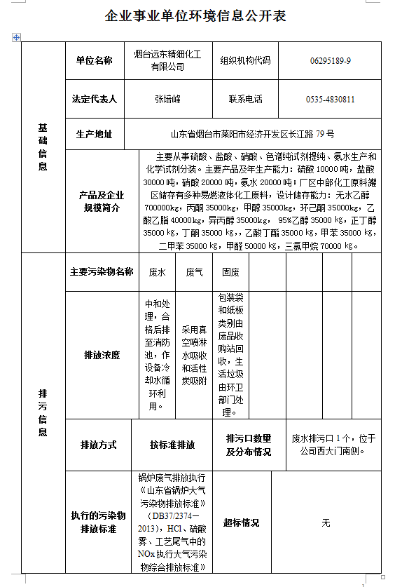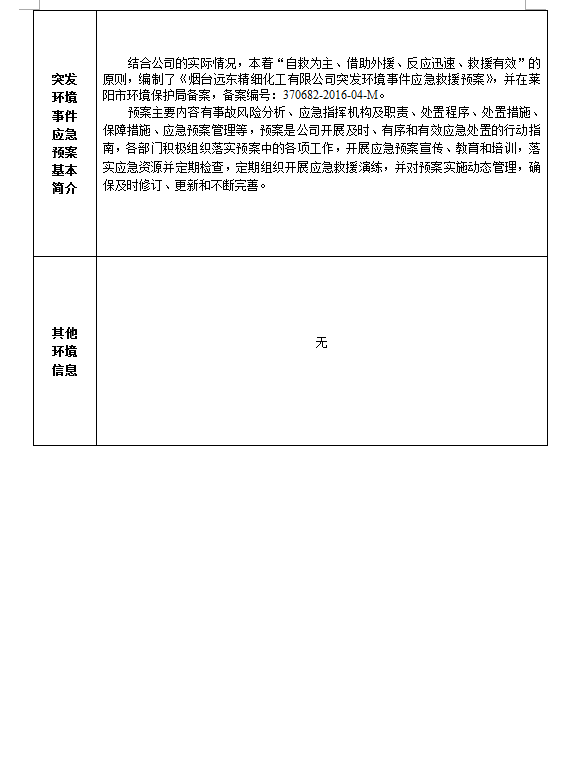 煙臺遠東精細化工有限公司2021年度環(huán)境信息公開